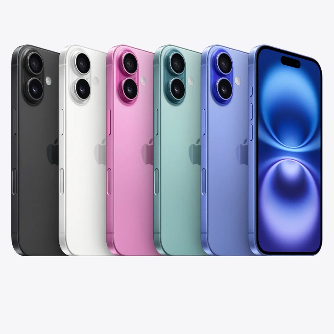 Kraft trifft auf Stil. Das iPhone 16 ist in fünf lebhaften Farben erhältlich, von Schwarz bis Ultramarin.