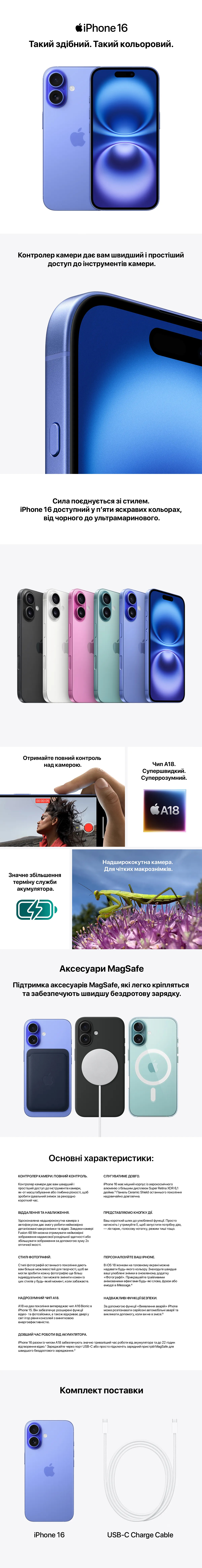 Документация; Кабель USB-C для зарядки (1 м); iPhone с iOS 18