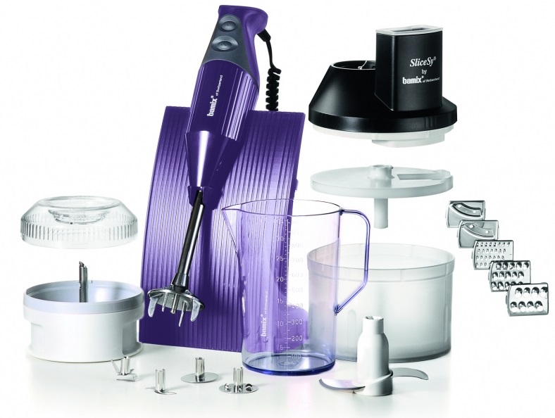 Блендер; Гарантийный талон; Инструкция; Измельчитель; 3х Терка; Держатель "SwissLine"; Насадка для взбивания; Мерный стакан; Многофункциональная насадка; 2х Слайсер; Насадка для перемешивания; Насадка для рубки мяса