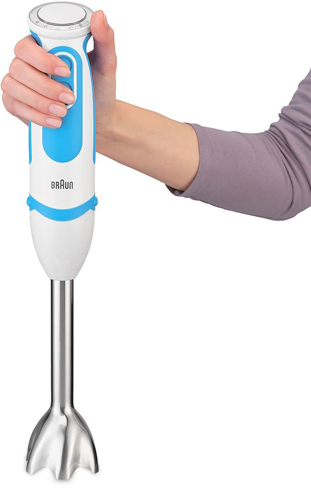 Форма и размер блендера точно подобраны так, чтобы идеально ложиться в ладонь не выскальзывая. Переключатель скоростей находится сверху, а кнопки включения и турборежима расположены как раз под пальцами. Система EasyClick позволяет присоединять насадки одним движением до щелчка фиксаторов. Даже самая сложная и утомительная готовка превращается в настоящее удовольствие, когда вы пользуетесь блендером Braun MQ 5060 WH/BL Twist!