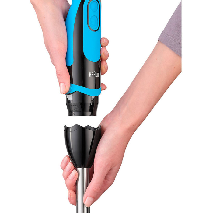 Погружной блендер Braun MQ 5264 BK/BL Shape имеет все необходимое, что бы приготовление ваших любимых блюд было легким и быстрым. Максимальная мощность в 1000 Вт позволяет работать прибору в супер быстром режиме «турбо», который имеется в настройках блендера, вместе с 21 стандартными режимами. Ножка прибора заслуживает отдельного внимания. Сделана данная насадка из нержавеющей стали, что гарантирует долгую и качественную работу. Уникальная форма ножки, выполняет не только функцию качественного измельчения, но и защищает поверхность от брызгов во время процесса, заботясь о чистоте поверхности, на которой используют блендер Braun MQ 5264.