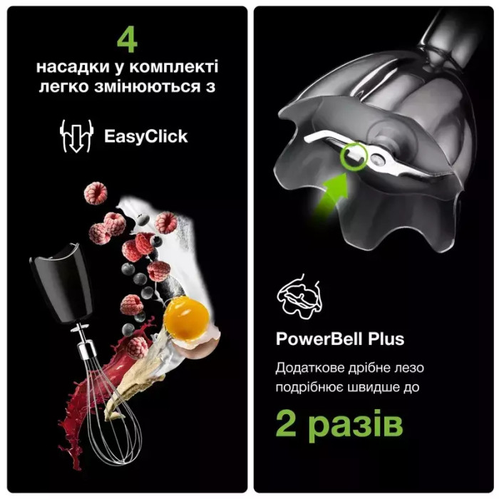 Ручной блендер Braun оснащен системой EasyClick, позволяющей легко и быстро заменить насадки в один клик. Выберите правильную закуску и сделайте из нее вкусные блюда для себя и своих гостей. Ручной блендер Braun обрадует вас своей универсальностью и простотой использования.