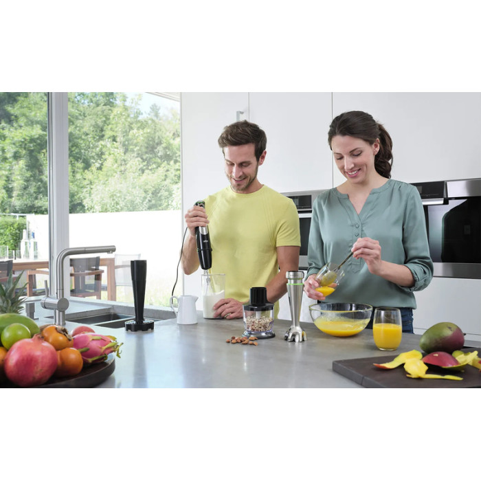 Благодаря уникальному сочетанию функциональности и доступной цены погружного блендера Braun MQ 9175 XL серии MultiQuick 9, он с легкостью может справиться с задачами, для которых ранее потребовалось бы покупать сразу несколько устройств. Теперь же вам нужно просто подключить насадки по своему усмотрению! С технологией EasyClick Plus сделать это можно одним движением. Блендер оснащен мотором с мощностью до 1200 Ватт, причем не использует привычные кнопки и регуляторы скорости. Вместо этого, запатентованная технология SmartSpeed от Braun позволяет настраивать скорость насадок в зависимости от силы, с которой ладонь сжимает рукоятку. То есть, вы получаете максимальный контроль над скоростью.