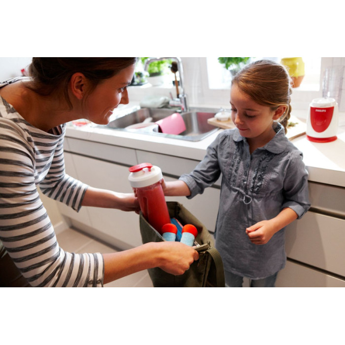 Отделение для хранения шнура; Насадки можно мыть в посудомоечной машине; Объем дорожной бутылочки: 0,6 л; Ударопрочный стакан блендера; Материал ножей: Нержавеющая сталь