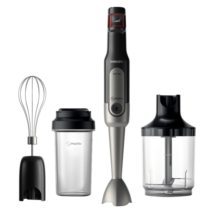 Специально сконструированная погружная «нога» по технологии ProMix, имеет куполообразную треугольную форму с волной по периметру, что позволяет более качественно измельчить и перемешать необходимые продукты, при этом максимально исключить разбрызгивание и образование комков. Блинчики, омлет, жидкий крем и многое другое можно приготовить при помощи дополнительной насадки – венчика. Благодаря измельчителю, который идет в комплекте, можно приготовить в считанные минуты фарш, паштет, всевозможные салаты, измельчить орехи и многое другое. Для смешивания продуктов предусмотрен специальный, мерный стакан объемом пятьсот миллилитров, который можно брать с собой в дорогу, так как есть специальная крышка для транспортировки.