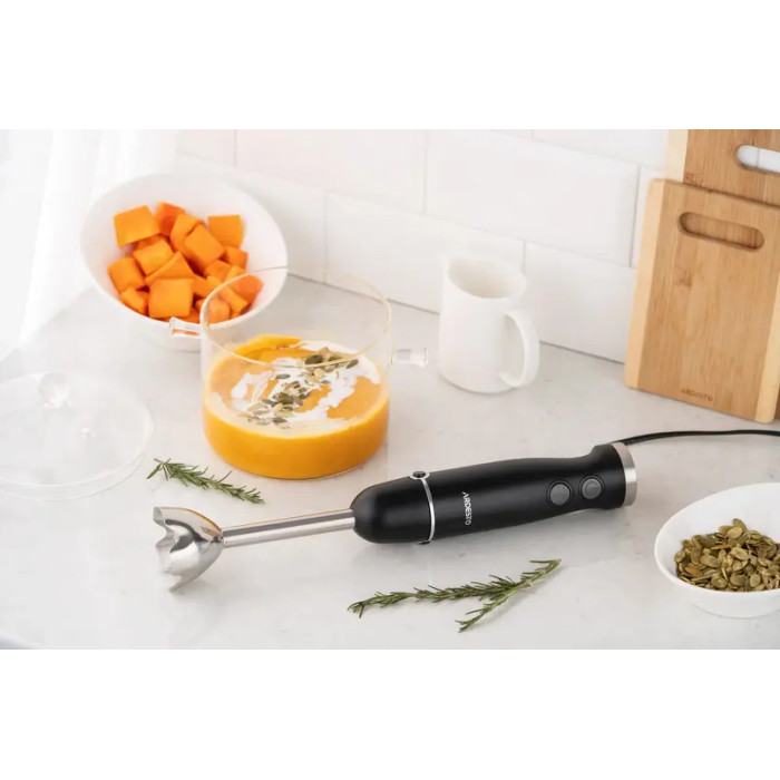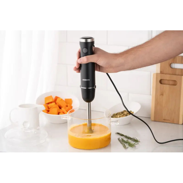 Погружной блендер ARDESTO HBG-600B черно-серебристого цвета пригодится для быстрого приготовления коктейлей, смузи, соков и различных соусов. Оснащен двигателем мощностью 600 Вт с низким уровнем шума, двумя режимами работы (обычный и турбо) и пятью скоростями. Устройство имеет тонкую эргономичную рукоятку, его лезвие изготовлено из нержавеющей стали, а на ножке предусмотрена защита от разбрызгивания. Длина кабеля питания составляет 1,3 м.