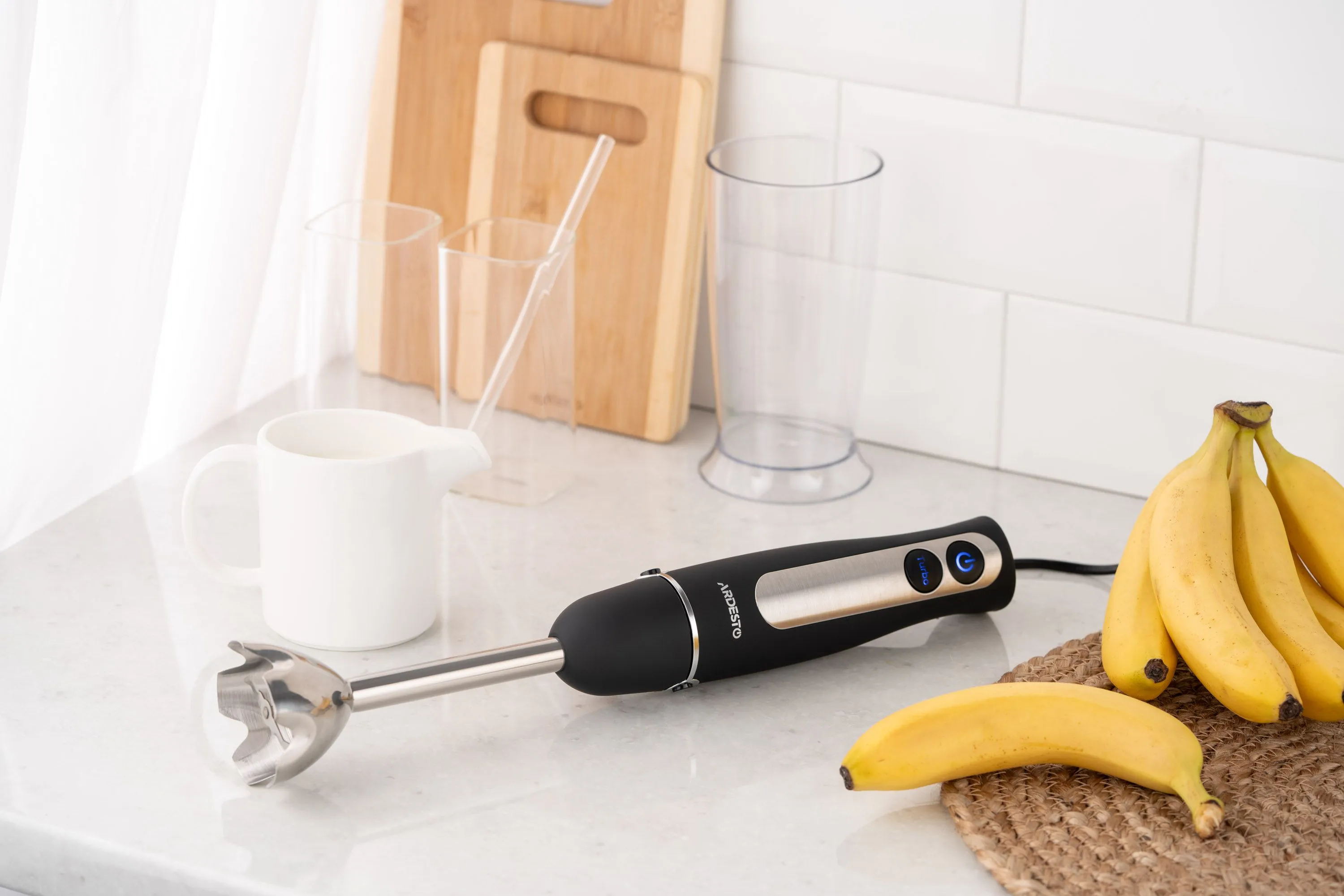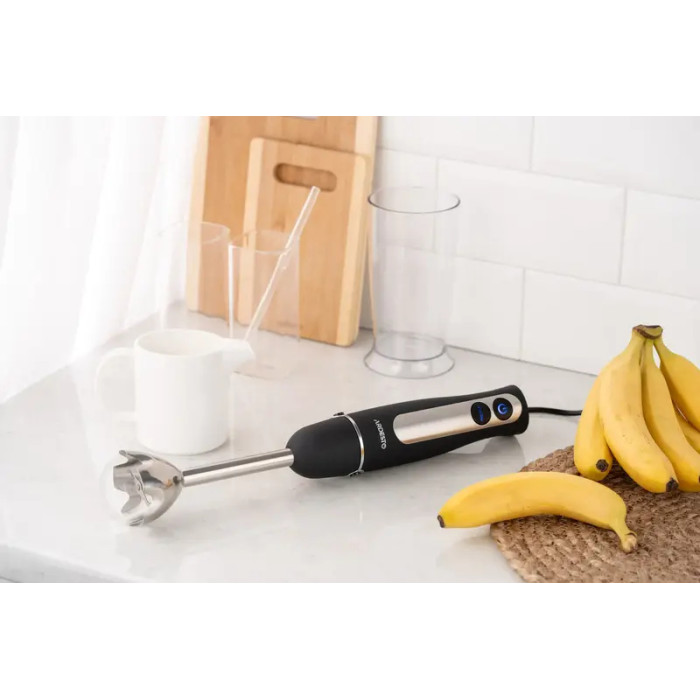 Погружной блендер ARDESTO HBG-800B черно-серебристого цвета пригодится для быстрого приготовления коктейлей, смузи, соков и различных соусов. Оснащен двигателем мощностью 800 Вт с низким уровнем шума, двумя режимами работы (обычный и турбо) и пятью скоростями. Устройство имеет тонкую эргономичную рукоятку, его лезвие изготовлено из нержавеющей стали, а на ножке предусмотрена защита от разбрызгивания. В комплекте имеется мерная чаша объемом 600 мл. Длина кабеля питания составляет 1,3 м.