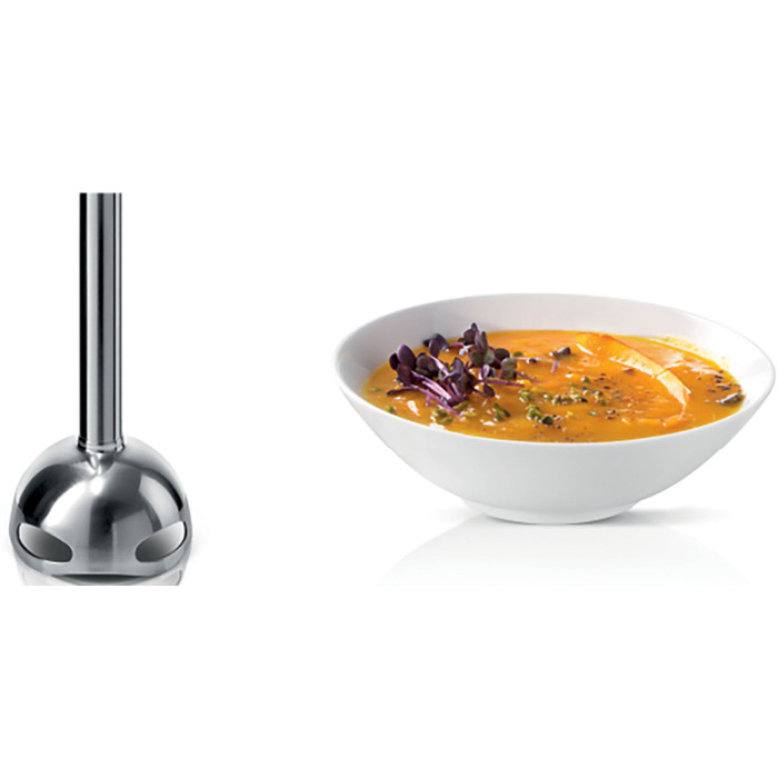Долговечный нож с 4 острыми лезвиями QuattroBlade. Быстрое и качественное приготовление соусов, измельчение овощей.