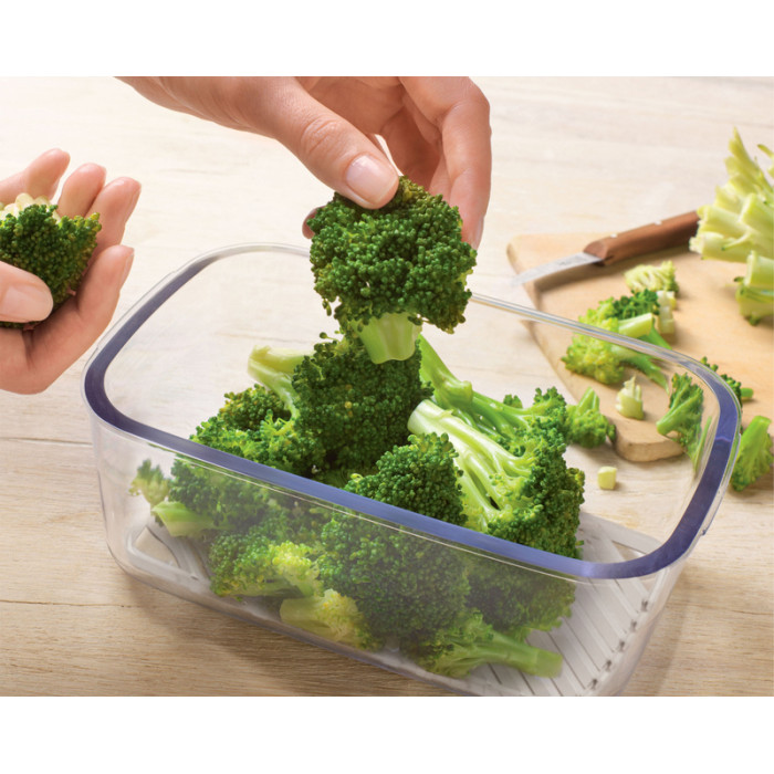 Контейнер для вакуумирования с тритана имеет функцию датировки, не бьется, устойчив к высокой температуре, не имеет вкуса и запаха.