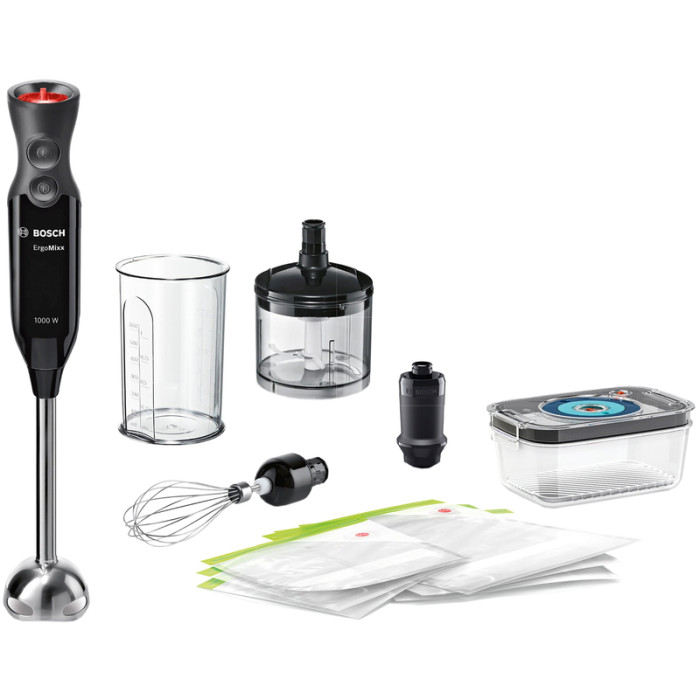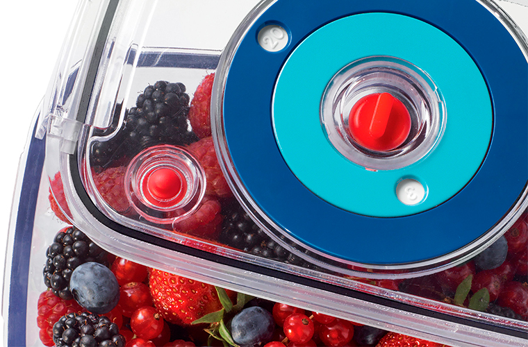 Прикрепите насадку-помпу для вакуумирования, которая входит в комплект, к блендеру. Поместите продукты в герметичный контейнер или пакет с зип-замком и откачайте воздух.