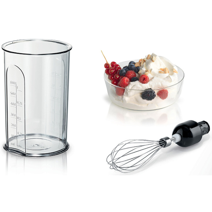 Эргономичная прорезиненная ручка, легкодоступные и большие кнопки, обеспечивают оптимальный комфорт и контроль во время работы блендера.