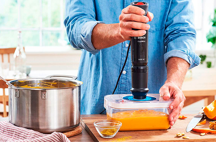 Блендер с мощностью 1000 Вт быстро справится с измельчением или перемешиванием продуктов.