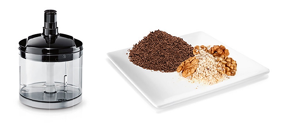 Универсальный измельчитель (полезный объём 500 мл) с острым ножом с нержавеющей стали измельчит орехи, лук, мясо и сыр для вкусных соусов, закусок и т.п.