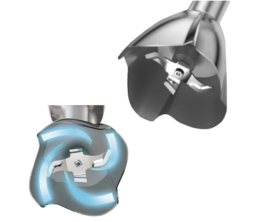 Обеспечивает оптимальный поток ингредиентов и низкое всасывание для эффективного смешивания – без перерывов и брызг.