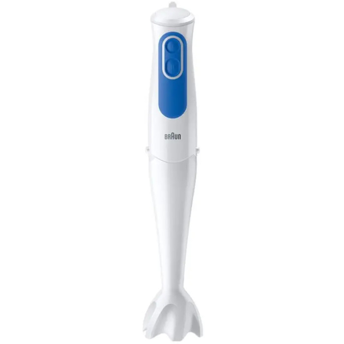 Погружной блендер серии MultiQuick 3. Максимальная мощность моторного блока: 700 Вт. Количество скоростей: 2. Цвет: белый/синий.