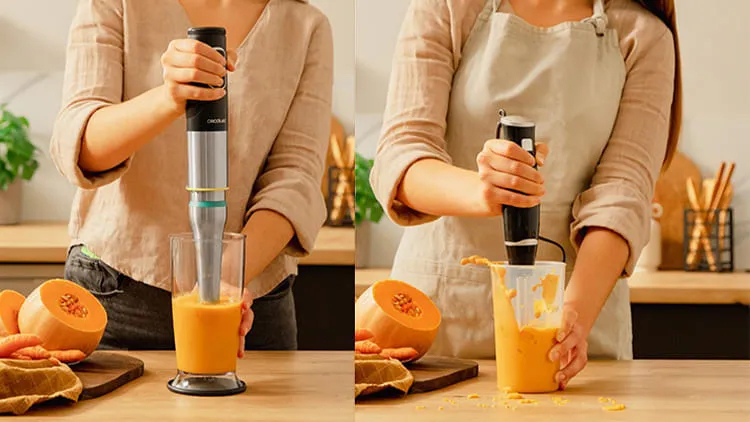 Легко достигайте идеальной текстуры блюд благодаря движению лезвий вверх и вниз с блендером CECOTEC, что повышает эффективность смешивания и предотвращает разбрызгивание во время работы.