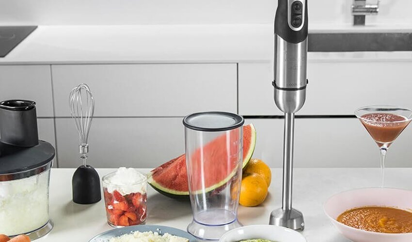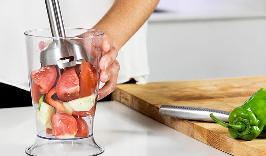 С ручным блендером CECOTEC мощностью 1000 Вт можно готовить любые блюда! Он может не только смешивать, но и колоть лед, так как оснащен невероятно мощным двигателем и острыми лезвиями. А система скоростей поможет подстроить его под любые ингредиенты! В комплекте к блендеру CECOTEC поставляется стеклянная чаша емкостью 800 мл с крышкой, измельчитель 1250 мл с 4 лезвиями и венчик.