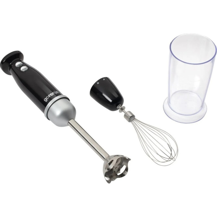 Прорезиненная рукоятка; Объем емкости для взбивания 0,6 л; Металлическая насадка для измельчения; Нож с четырьмя лезвиями