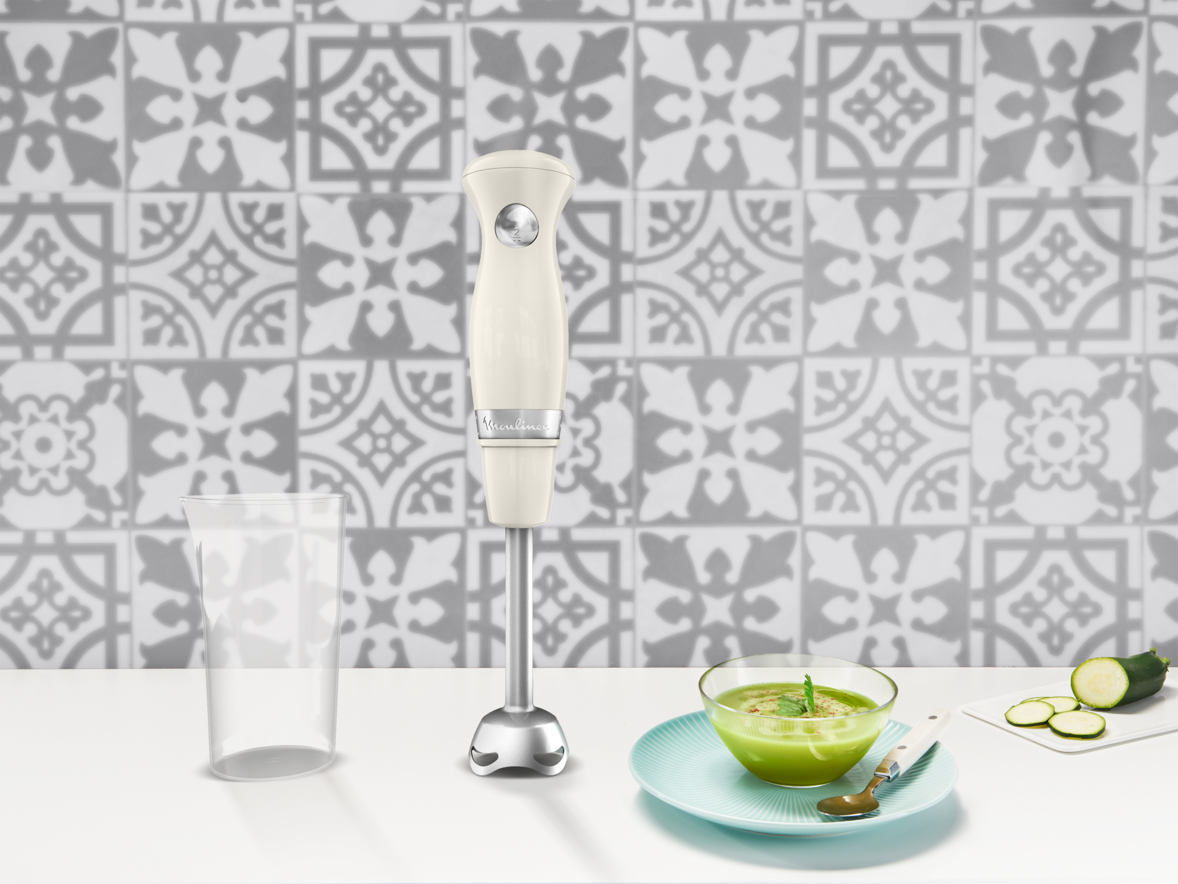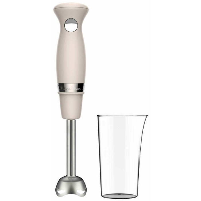 Погружной блендер Moulinex SOLEIL IVOIRE DD471A10 позволяет приготовить множество вкусных блюд, гарантируя при этом идеальный результат. Благодаря своим практичным функциям он специально разработан для облегчения ежедневного приготовления блюд. Его мощность 450 Вт обеспечивает оптимальную, быструю работу и отличный результат. Он также имеет два лезвия из высококачественной нержавеющей стали, благодаря которым измельчение происходит плавно, быстро и качественно, а сама насадка специальной формы препятствует разбрызгиванию. Больше никаких брызг вокруг. Всего одна кнопка управления с двумя скоростями поможет легко справиться с переключением при работе с ингредиентами разной консистенции.
