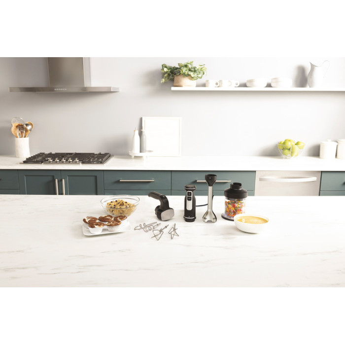 В комплекте с миксером вы получите венчики, которые будут быстро вводить воздух в смесь, чтобы все ваши пирожные и булочки были невероятно пышными. При необходимости устройство с венчиками надежно сохраняет вертикальное положение. Для того чтобы их вынуть, просто нажмите кнопку на корпусе. И больше не отказывайте себе в однородном тесте для блинов, пиццы, печенья и в душистых домашних начинках.