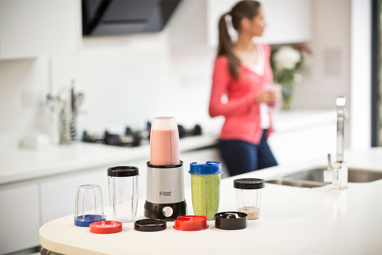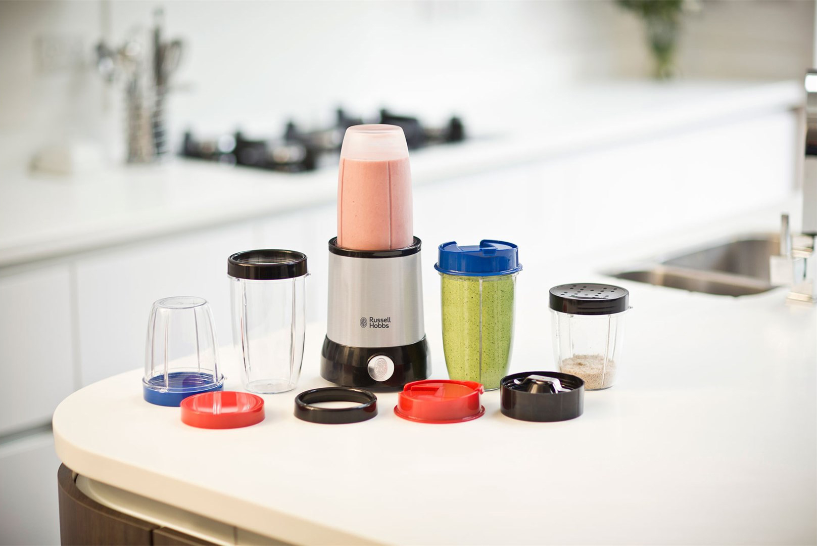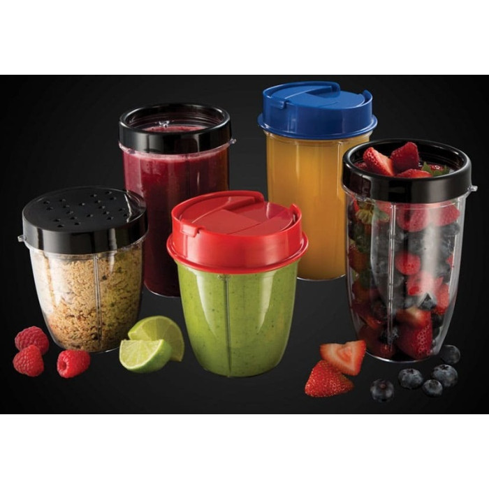 Он поставляется с 5 емкостями – 3 больших и 2 маленьких – для каждого члена семьи, а также разными крышечками для хранения или подачи на стол. Блендер снабжен даже шейкером-крышкой с отверстиями, пригодными для сыра, шоколада и специй и крышкой для путешествий со специальным носиком. С таким большим количеством функций этот удобный прибор станет незаменимым для здоровья сознательной семьи.