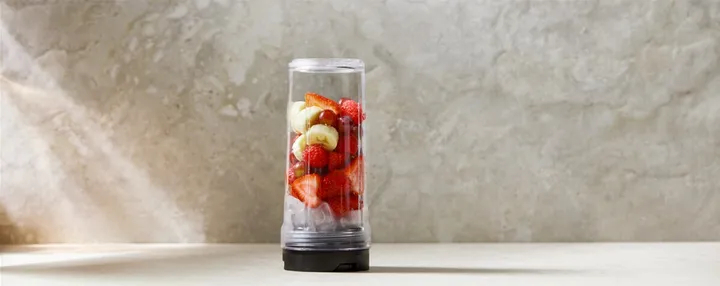 Чаша этого блендера объемом 0,47 л также очень практична. Она изготовлена из легкого и безопасного материала, не содержащего BPA. А после надевания плотной крышки с носиком и ручкой для переноски она превращается в удобную бутылку на одну порцию, которую можно взять с собой куда угодно — от спортзала до офиса. С таким решением готовить, хранить и транспортировать готовые блюда и напитки становится очень просто и удобно.