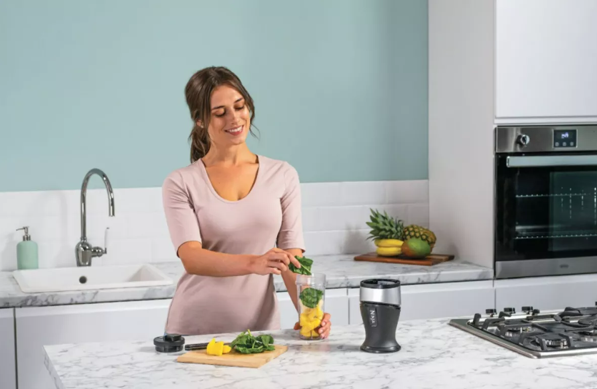 Попробуйте легкий в использовании Ninja блендер с двумя чашами, который поможет быстро приготовить любимые смузи и измельчить продукты.