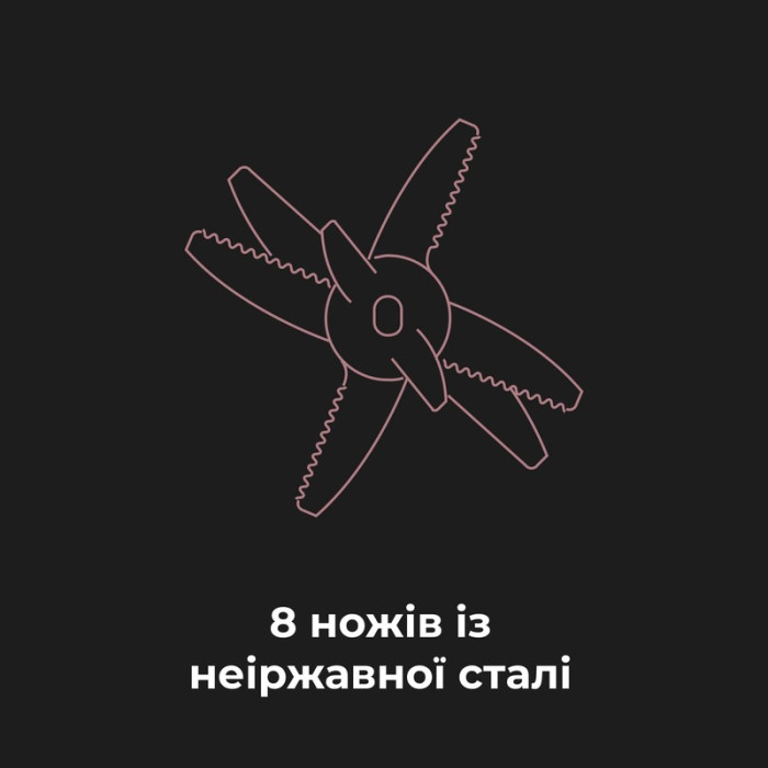 Сырые овощи, орехи, мясо – все эти продукты можно легко измельчить благодаря 8 ножам из нержавеющей стали. Вы получите идеальную текстуру независимо от ингредиентов. Просто выберите требуемый режим скорости для каждого продукта.