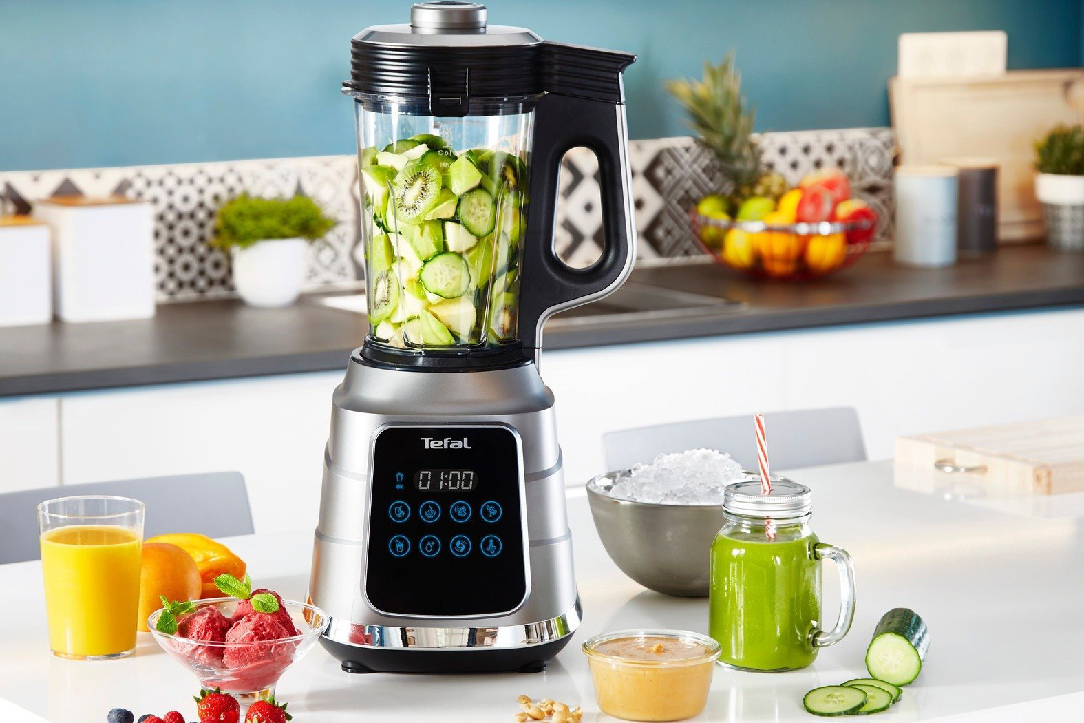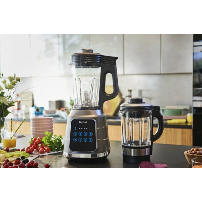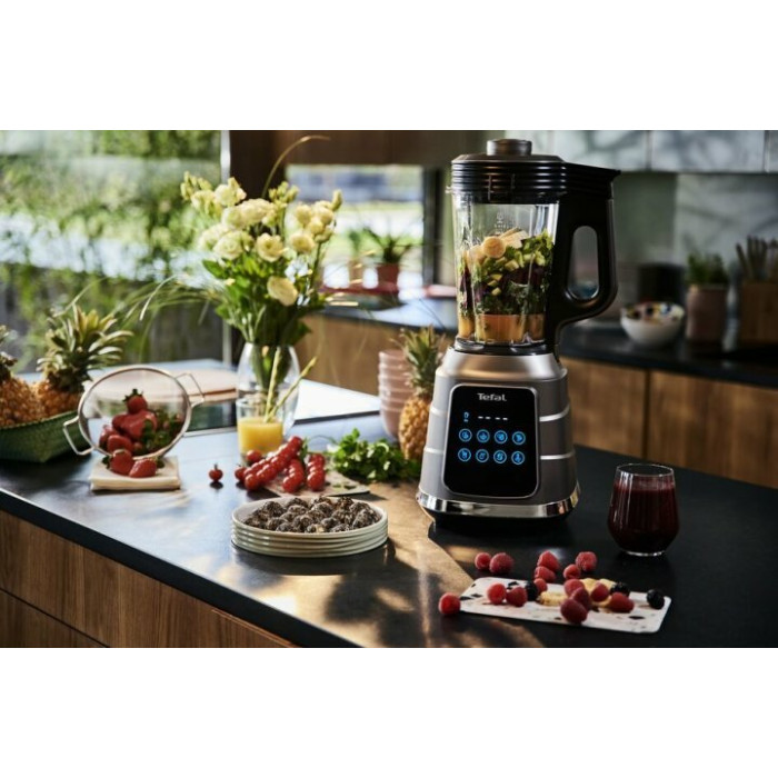 Получив в своё распоряжение мощный вакуумный стационарный блендер с 10 автоматическими программами, вы значительно расширите домашнее меню. Усовершенствованная модель Tefal BL985A31, укомплектованная дополнительной чашей, позволяет готовить холодные и горячие блюда без риска для рабочих стаканов и с сохранением максимума полезных веществ в готовых смесях. Это хорошее решение для спортсменов и всех, кто придерживается здорового питания.