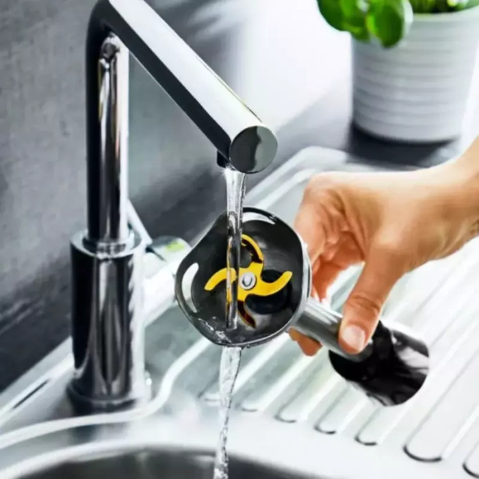 Чистить этот блендер также легко, как и пользоваться им. Легко разбираемая конструкция обеспечивают простую очистку каждый раз. В частности, съемные части, такие как ножи, венчик и емкости, можно легко разобрать и вымыть под проточной водой. Или в посудомоечной машине, чтобы максимально упростить очистку после приготовления.