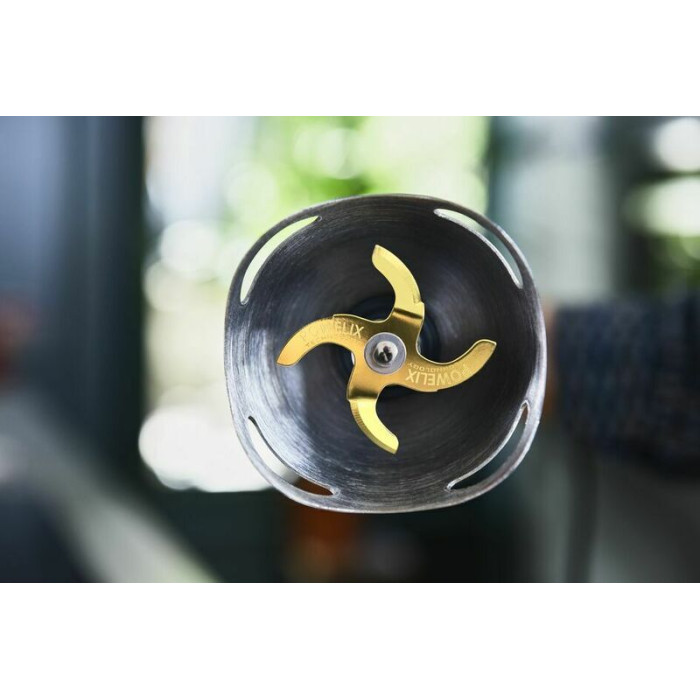 Tefal HB95LD38 оснащен технологией Powelix Life, которая обеспечивает титановое покрытие лезвий, таким образом они становятся на 30% эффективнее в работе и долговечнее в эксплуатации. Высокая точность взбивания обеспечена наличием многоскоростного триггера, который работает для получения любой необходимой текстуры. Мощный мотор позволит смешивать продукты разной твердости, текстуры, консистенции в кратчайшие сроки.