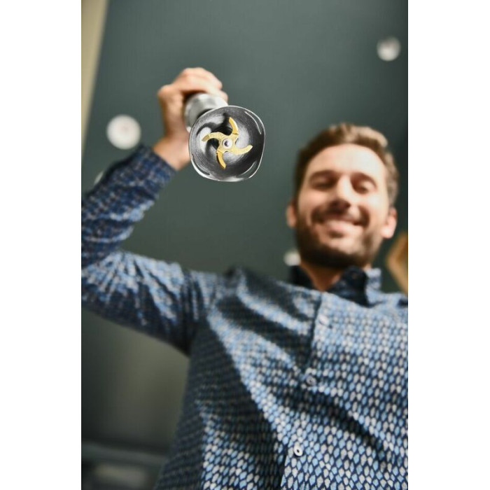 Tefal HB95LD38 оснащен разными рабочими насадками. Обновленный функциональный фуд-процессор имеет 5 новых функций для приготовления разнообразных блюд. Насадка измельчитель прекрасно подойдет для приготовления салатов, соусов, специй и так далее. Насадка венчик поможет идеально взбить ингредиенты на крем для торта или яйца для омлета. Также имеется насадка для пюре.