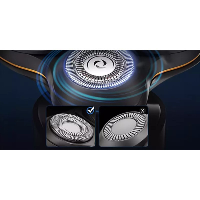 Очистка под проточной водой; 60 минут автономного бритья; Индикатор батареи; Сухое и влажное бритье; Самозатачивающиеся лезвия; Защита от защемления