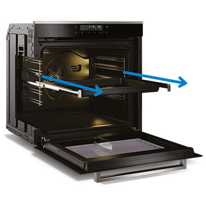 Если вам трудно доставать из духовки тяжелые блюда, телескопические направляющие упростят вашу жизнь. Система направляющих позволяет полностью (или на 2/3 для моделей с частичными телескопическими направляющими) выдвинуть противень из духовки и обеспечивает его поддержку.