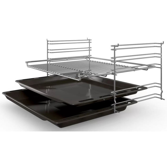 С этой функцией тепло и равномерно распределяется по всему духовому шкафу, что позволяет готовить на нескольких (даже на трех) уровнях одновременно. Можно готовить сладкие и соленые блюда без смешивания ароматов.