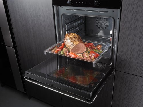 Для плавного и абсолютно бесшумного закрытия дверцы духовки достаточно лишь мягкого прикосновения.