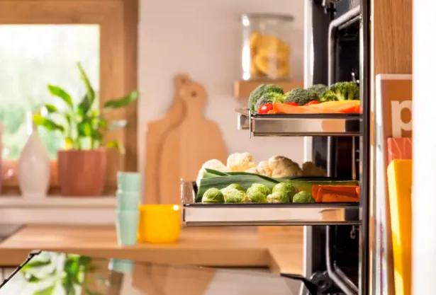 Сочетание продуманной системы циркуляции воздуха, равномерного распределения уровней приготовления и особой сводчатой формы духовки обеспечивает равномерное пропекание блюд на каждом уровне, а поскольку духовка большая, то и наблюдать за приготовлением на каждом уровне удобно.