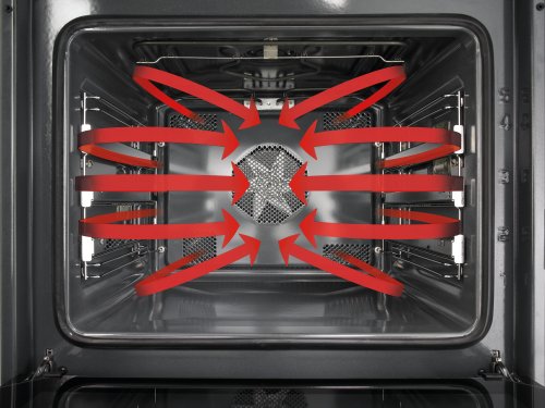 Тепловые датчики управляют системой автоматического охлаждения внешних боковых стенок духовки до тех пор, пока температура не опустится ниже 60°C. Система DynamiCooling следит, чтобы температура стенок духовки с внешней стороны постоянно оставалась ниже определенного уровня. Специальный вентилятор, размещенный внутри корпуса духовки, забирает холодный воздух снаружи и смешивает его с горячим воздухом из духовки. Охлажденная смесь циркулирует под внешними стенками прибора. Такая система эффективно предотвращает перегрев мебели даже при очень высоких температурах, например, при пиролитической очистке.