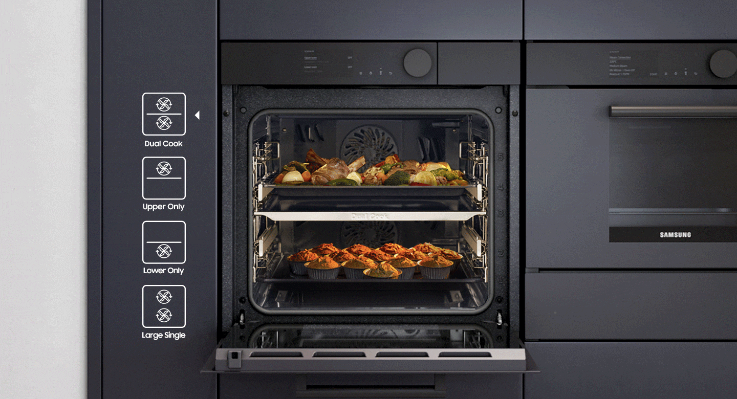 Выберите способ приготовления блюд разного размера и экономьте время и энергию. Система Dual Cook имеет верхнюю и нижнюю зоны приготовления, которые работают независимо или вместе. Используйте одну зону для приготовления небольших блюд или создайте две зоны для приготовления разнообразных блюд. А для приготовления больших блюд можно использовать всю печь.