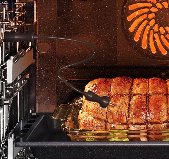 Можно легко проверите внутреннюю температуру мяса и убедиться, что оно всегда приготовлено идеально, в соответствии с вашим вкусом. Щуп для мяса избавляет от необходимости угадывать, четко показывая, когда мясо достаточно прожарилось. Не нужно тратить время и тепло, открывая духовку, чтобы проткнуть мясо.