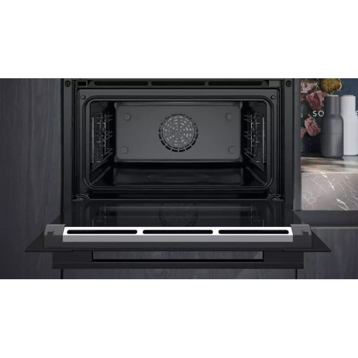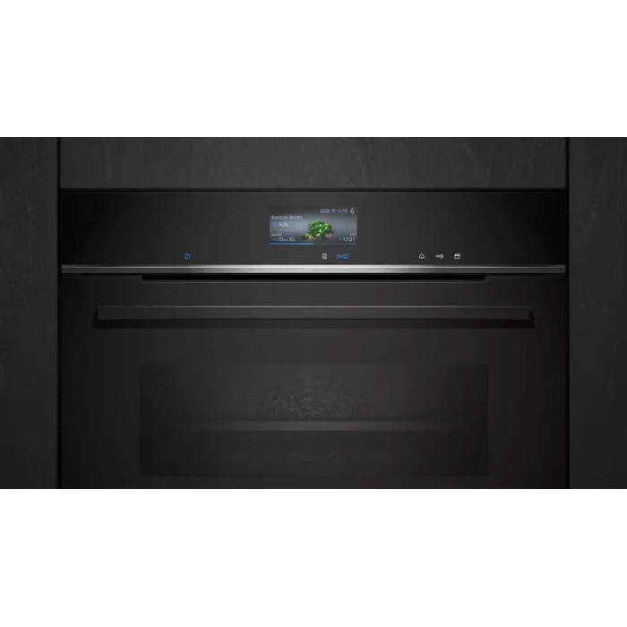 Откройте для себя комбинированный духовой шкаф пароварку Siemens CS736G1B1 серии iQ700 и совершенствуйте свои кулинарные навыки, готовя вкусные и полезные блюда каждый день. Эта вместительная духовка объемом 47 литров предоставляет достаточно места и широкий функционал для раскрытия вашего поварского таланта и удовлетворения аппетитов ваших близких. В ней есть все: от приготовления на пару со Steam Cooking Plus и инновационной технологии 4D hotАir для равномерного приготовления блюд до традиционного верхнего и нижнего нагрева для классических рецептов и гриля с горячим воздухом для получения идеальной золотистой корочки.