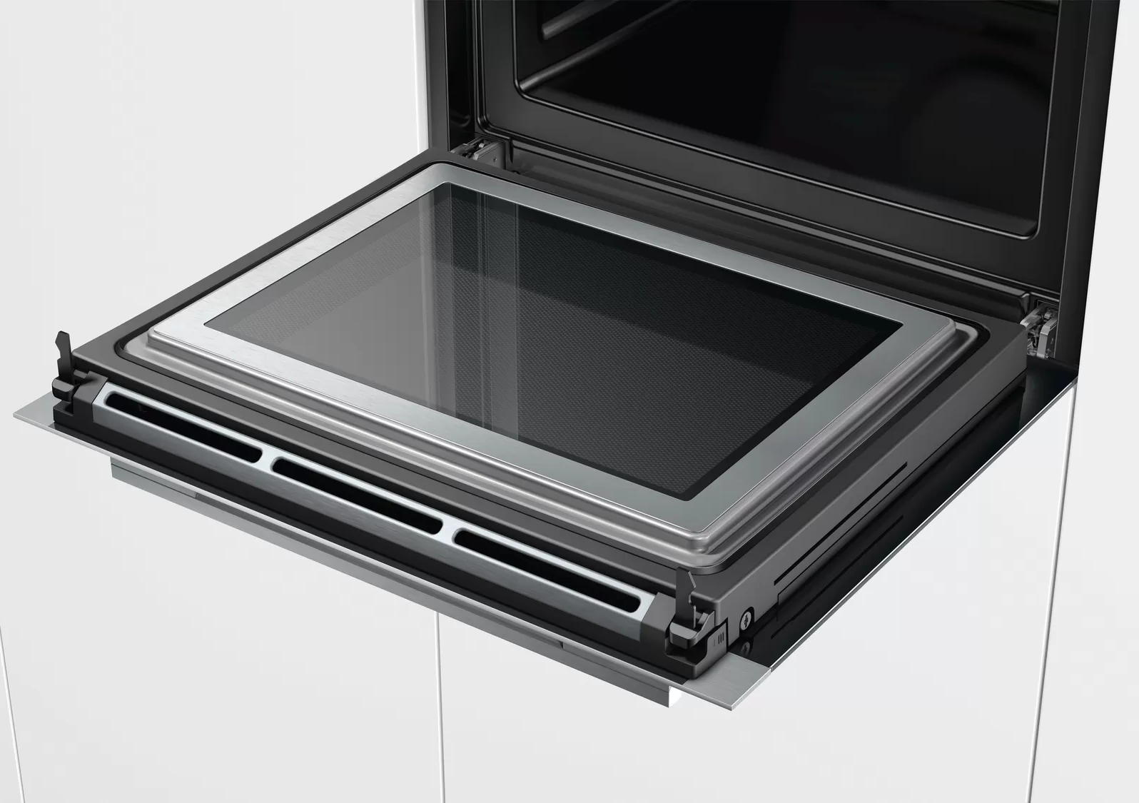 Духовой шкаф с функцией микроволн и пароварки от Siemens предлагает ряд инновационных технологий и современный дизайн, который идеально впишется в высокий шкаф или под столешницу. Комбинируйте, как пожелаете.