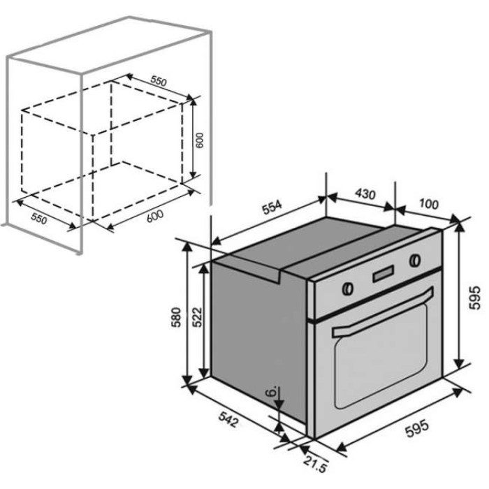 Духовой шкаф; Решетка; Противень; Шнур питания с вилкой; Монтажный комплект; Инструкция; Гарантийный талон