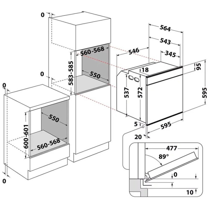 Größe der Nische für den Einbau (HxBxT)
