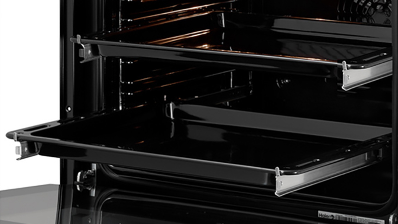 Удобная и безопасная установка противня и его извлечение. Телескопические направляющие облегчают использование духовки: противень не упадет, даже если выдвинут полностью.