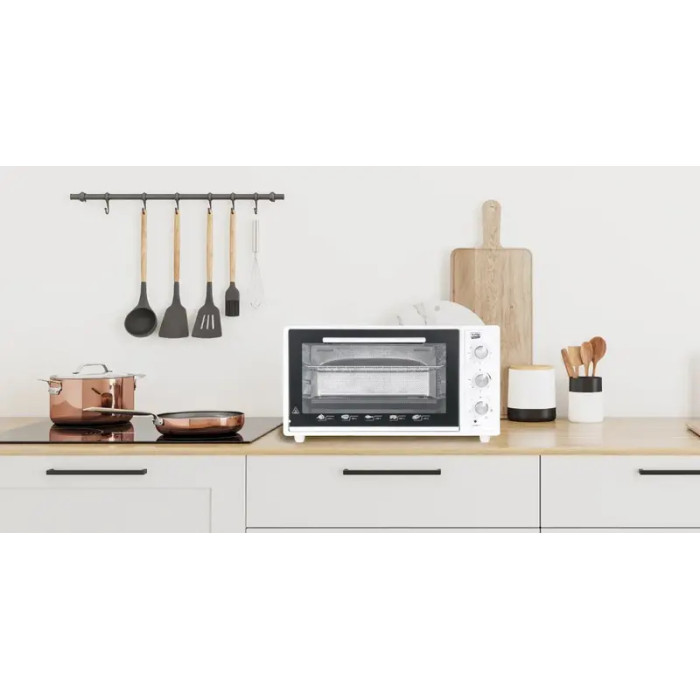 Мини-духовка MILENA имеет 6 различных программ, благодаря которым можно запечь курицу или рыбу, приготовить пиццу, овощи-гриль или сдобную выпечку. Объема 45 л хватит для приготовления полноценного обеда или ужина для всей семьи. Круглая форма для выпекания входит в комплектацию. Также в комплекте стандартный противень и решетка для гриля.