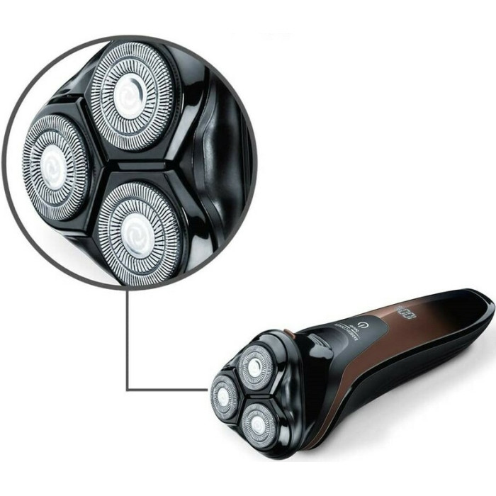 - Высокоточная система стрижки с тремя подпружиненными режущими головками с двойным кольцом;