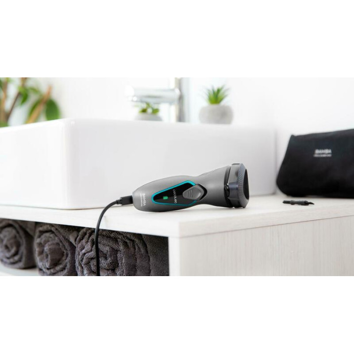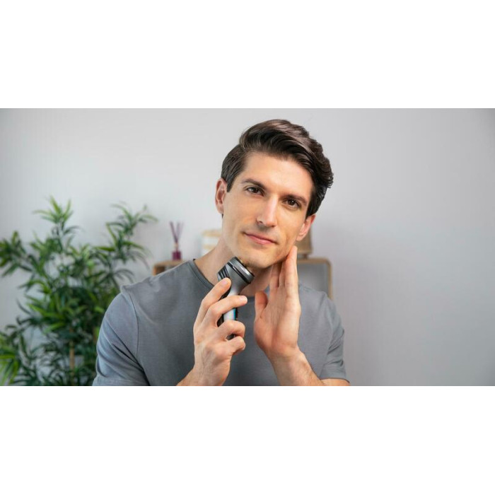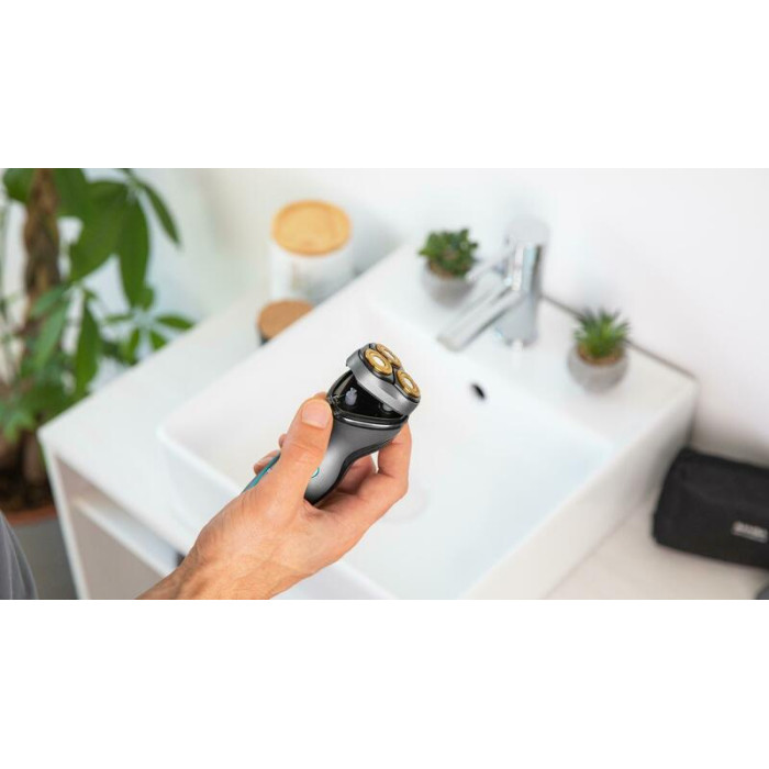 Защита лезвия с титановым покрытием делает его более прочным и долговечным, а двойная направляющая захватывает больше волосков при каждом движении, обеспечивая более быстрое бритье и уменьшая раздражение кожи, а 3D-головка с максимальной адаптацией к контуру лица дает гладкость бритья без необходимости оказывать давление во время использования.