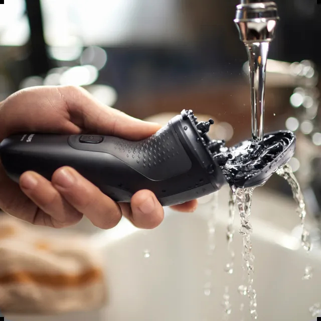 Головка бритвы открывается одним нажатием кнопки для очистки проточной водой.