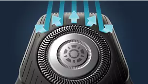 Новая форма бритвенных головок разработана для более высокой точности срезания щетины. Их поверхность оснащена продольными прорезями, которые направляют волос в положение оптимальное для максимально качественного среза лезвием.